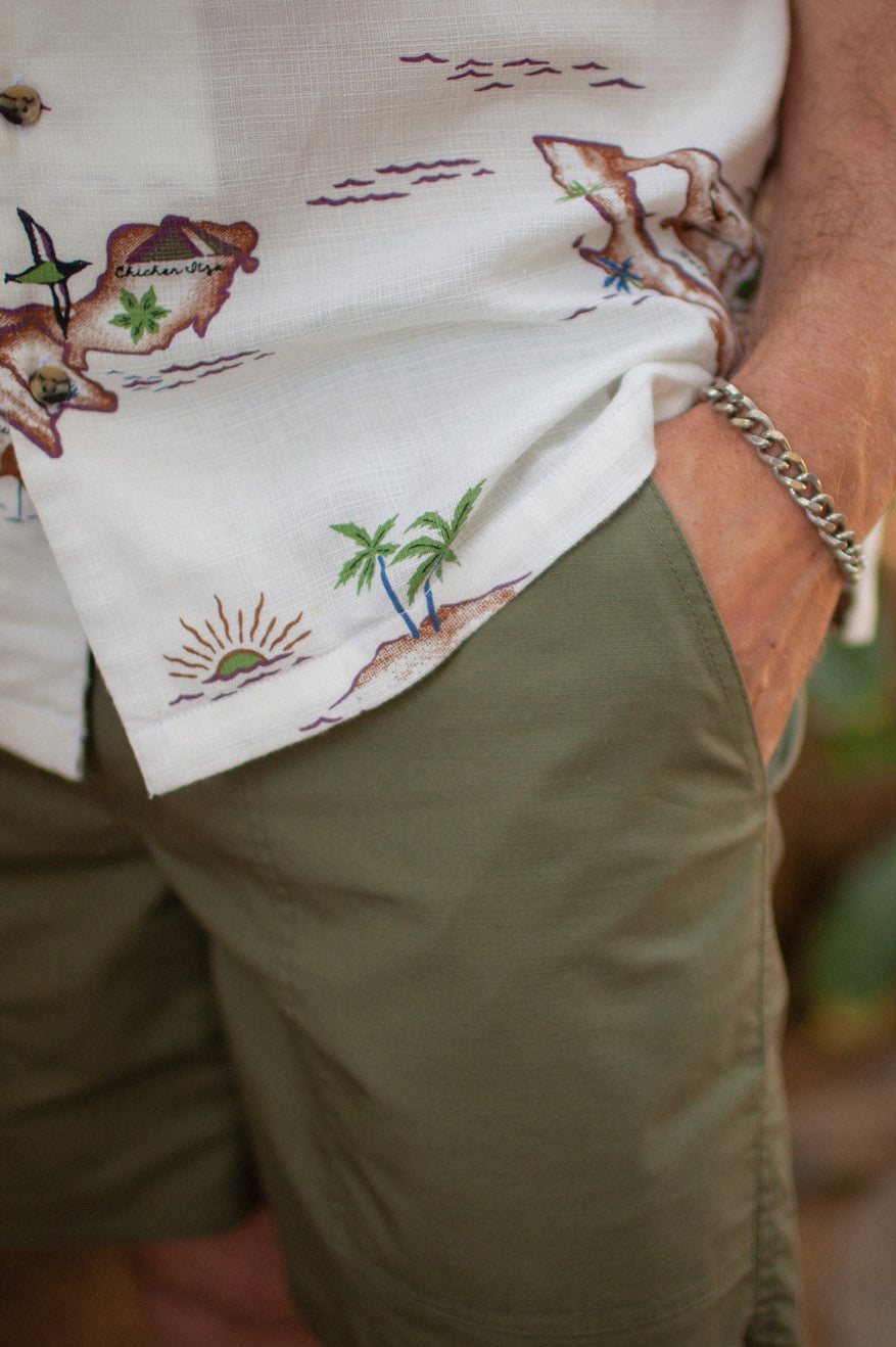 Bunker Slub S/S Camp Collar Woven Shirt - Off White/Map