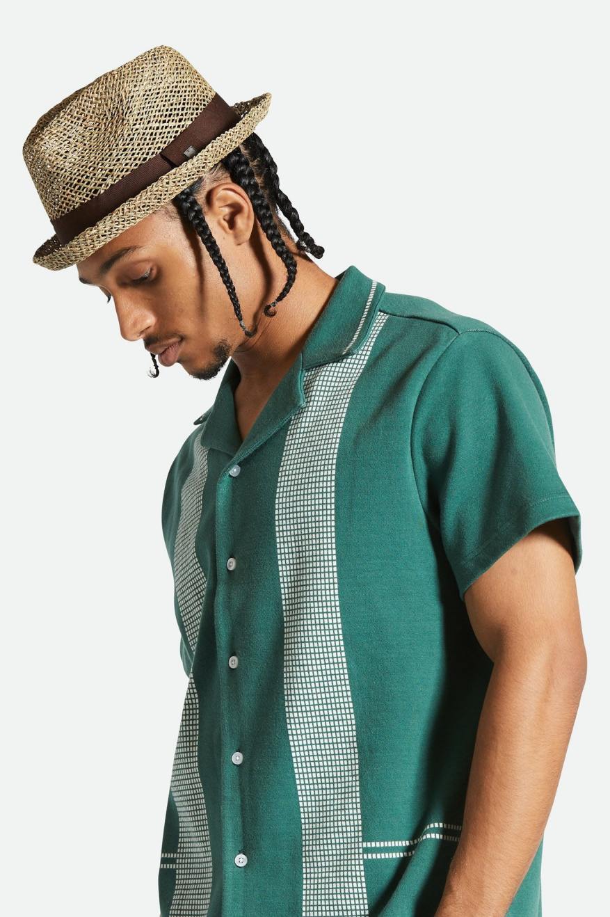 The Castor is a traditional menswear fedora with a strong pinch and bold crease. It’s made with medium-stiff paper straw embellished with a grosgrain outside band and metal crest pin. It has 50+ UPF and an adjustable interior sweatband making it a flawless companion for sunny days.